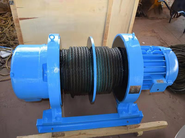 一字型卷扬机,用卷筒缠绕钢丝绳或链条提升或牵引重物的轻小型起重设备,又称绞车。卷扬机可以垂直提升、水平或倾斜拽引重物。可单独使用,也可作起重、筑路和矿井提升等机械中的组成部件,因操作简单、绕绳量大、移置方便而广泛应用。主要运用于建筑、水利工程、林业、矿山、码头等的物料升降或平拖。